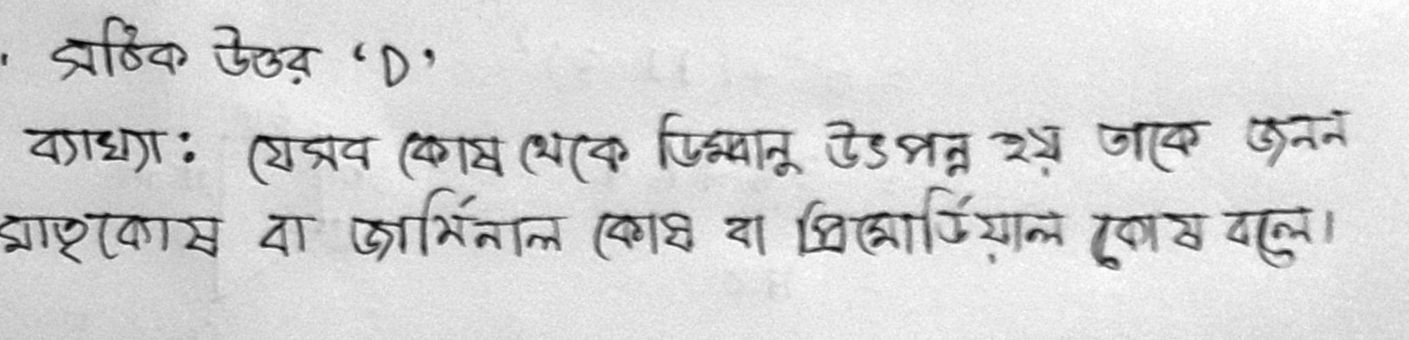 লিপোপ্রোটিন দিয়ে গঠিত কোনটি? Option A: কোষ প্রাচীর , Option B: ফাইব্রিন , Option C: ক্লোরোফিল, Option D: ক্লোরোপ্লাস্টের ল্যামেলি, correct answer is: ক্লোরোপ্লাস্টের ল্যামেলি