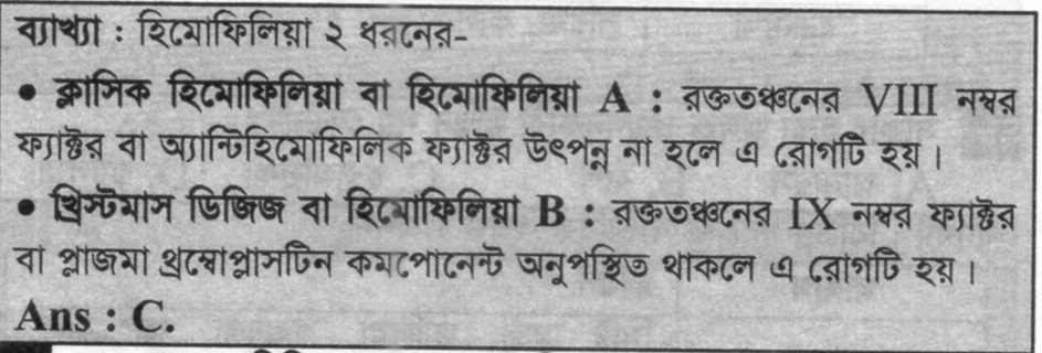 রক্ততঞ্চনের কোন ফ্যাক্টরের অভাবে ক্লাসিক হিমোফিলিয়া হয় ?