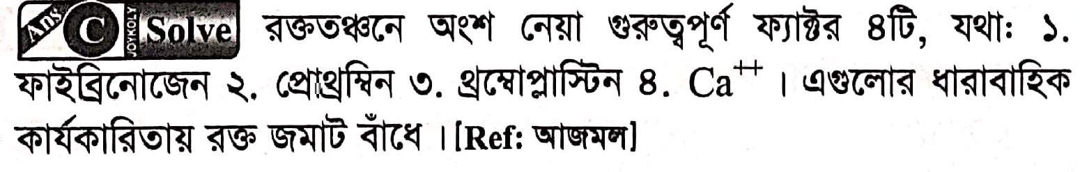 রক্ততঞ্চনে কোন ধাতব আয়ন অংশগ্রহন করে?