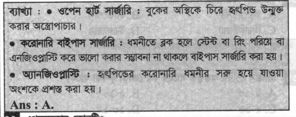 Correct Answer is: বাইপাস সার্জারি