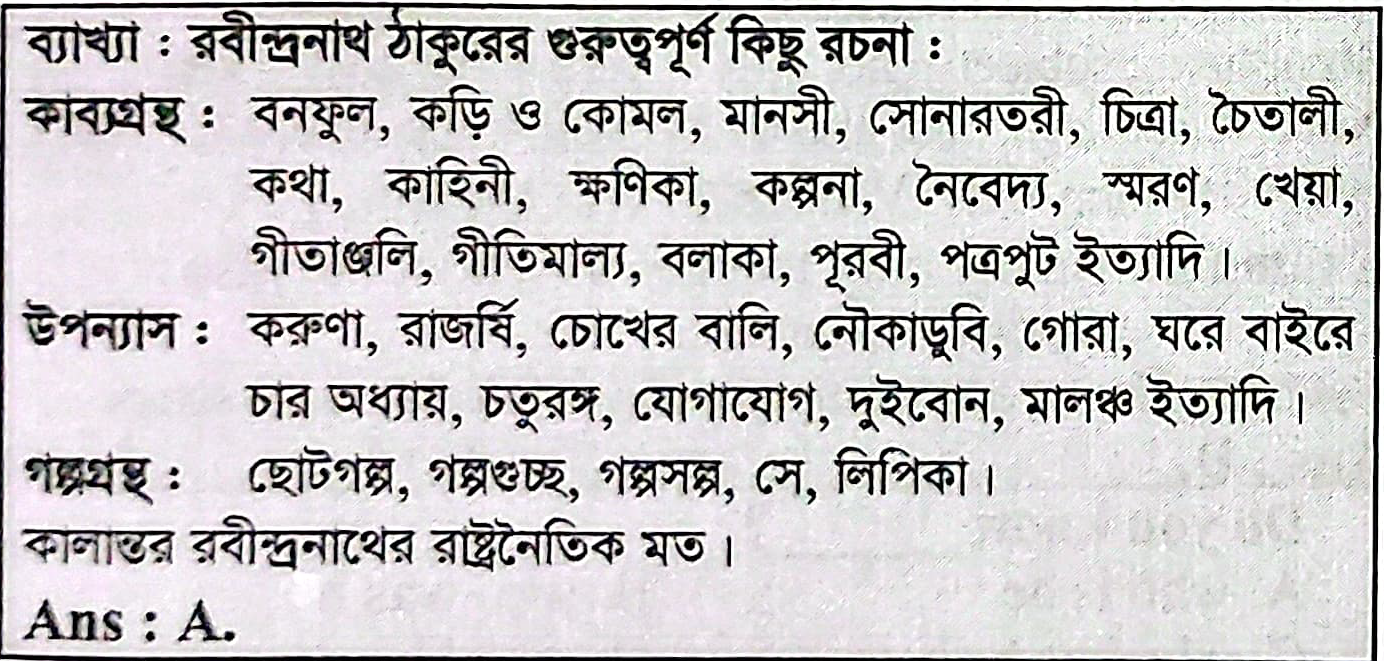 রবীন্দ্রনাথ ঠাকুরের রচনা নয়- Option A: মৃণালিনী , Option B: অচলায়তন , Option C: গৃহদাহ, Option D: ভিখারিনী, correct answer is: মৃণালিনী গৃহদাহ