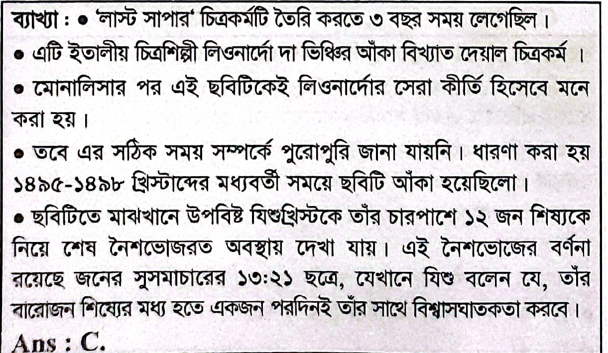 `লাস্ট সাপার` চিত্রকর্মটি সৃষ্টি করতে সময় লেগেছিল: