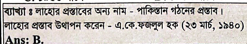 লাহোর প্রস্তাব ঘোষণা করা হয়-