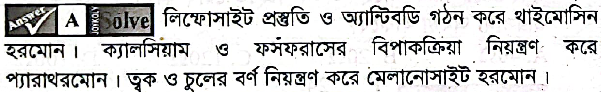 লিম্ফোসাইট প্রস্তুতি ও অ্যান্টিবডি গঠনে সহায়তা করে কোনটি?