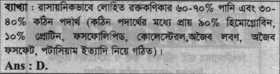 লোহিত রক্তকণিকার পানির কত শতাংশ?