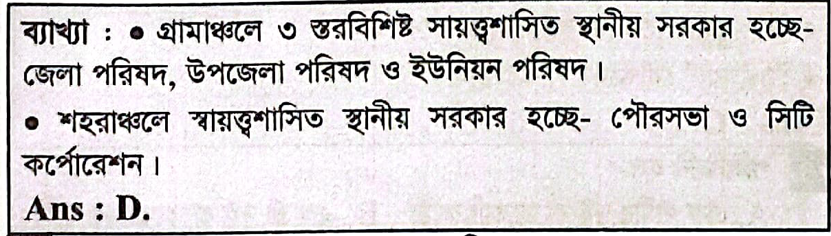 শহর এলাকায় স্থানীয় স্বায়ত্তশাসিত সংস্থা কী?