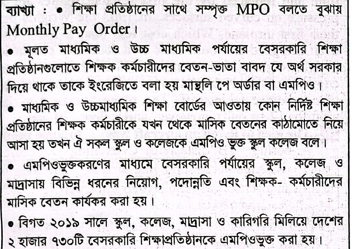 শিক্ষা প্রতিষ্ঠানের সাথে সম্পৃক্ত MPO দ্বারা বোঝায়-