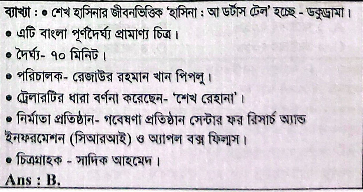 শেখ হাসিনার জীবন ভিত্তিক ‘হাসিনাঃ এ ডটার্স টেল’ কোন ধরনের শিল্পকর্ম?