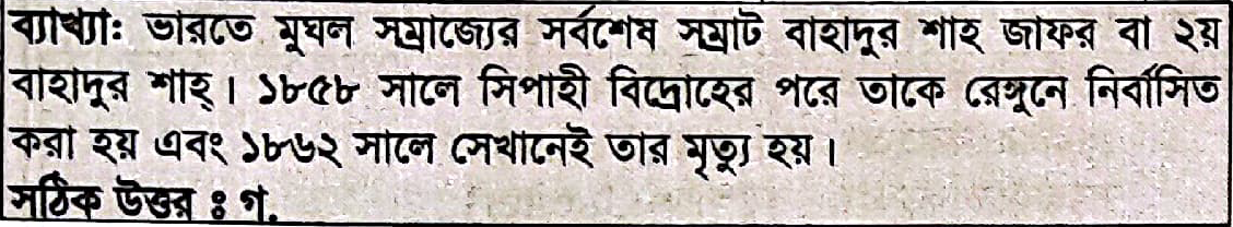 Correct Answer is: বাহাদুর শাহ জাফর