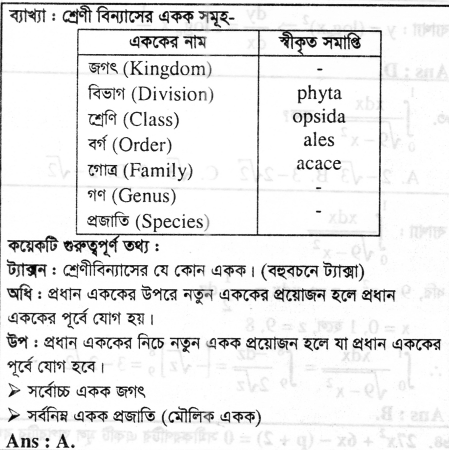 শ্রেণীবিন্যাসের মৌলিক এককের নাম কি? Option A: ট্যাক্সন , Option B: গণ , Option C: দ্বিপদ, Option D: প্রজাতি, correct answer is: প্রজাতি