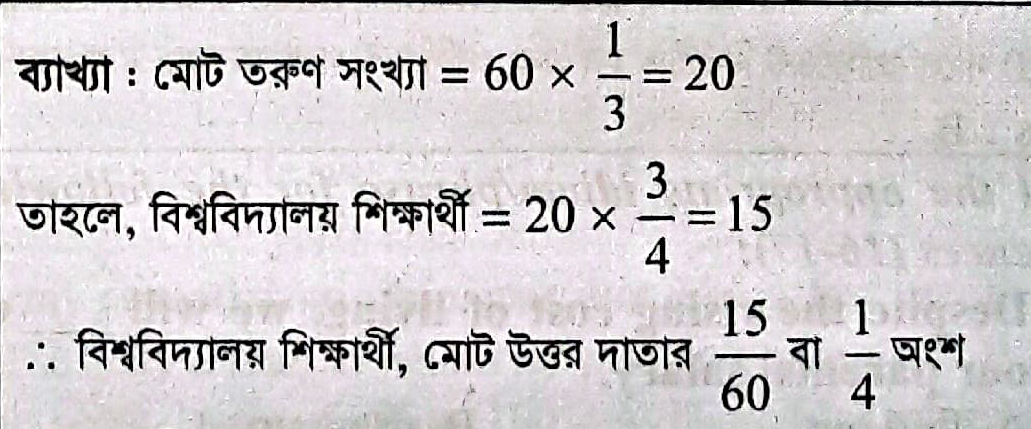 ষাটজন উত্তরদাতার এক-তৃতীয়াংশ তরুণ যাদের তিন-চতুর্থাংশ বিশ্ববিদ্যালয়ের শিক্ষার্থী। মোট উত্তরদাতার কত অংশ বিশ্ববিদ্যালয়ের শিক্ষার্থী?