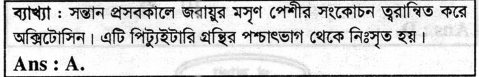 Correct Answer is: অক্সিটোসিন