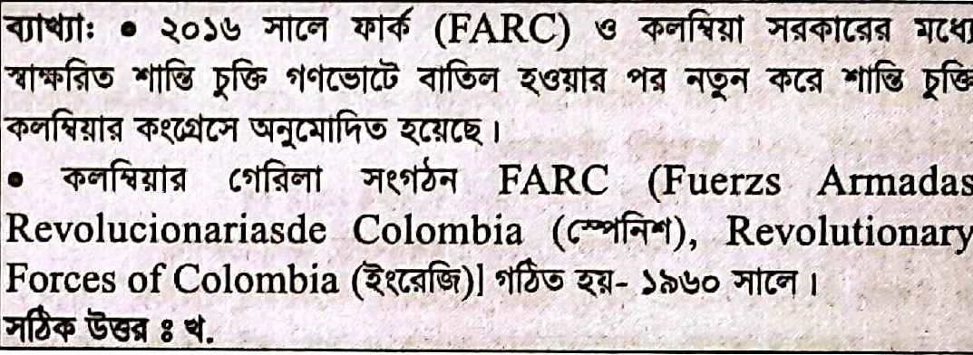 সম্প্রতি কলম্বিয়া সরকারের সাথে কোন বিদ্রোহী গোষ্ঠীর স্বাক্ষরিত শান্তিচুক্তি গণভোটে বাতিল হয়?