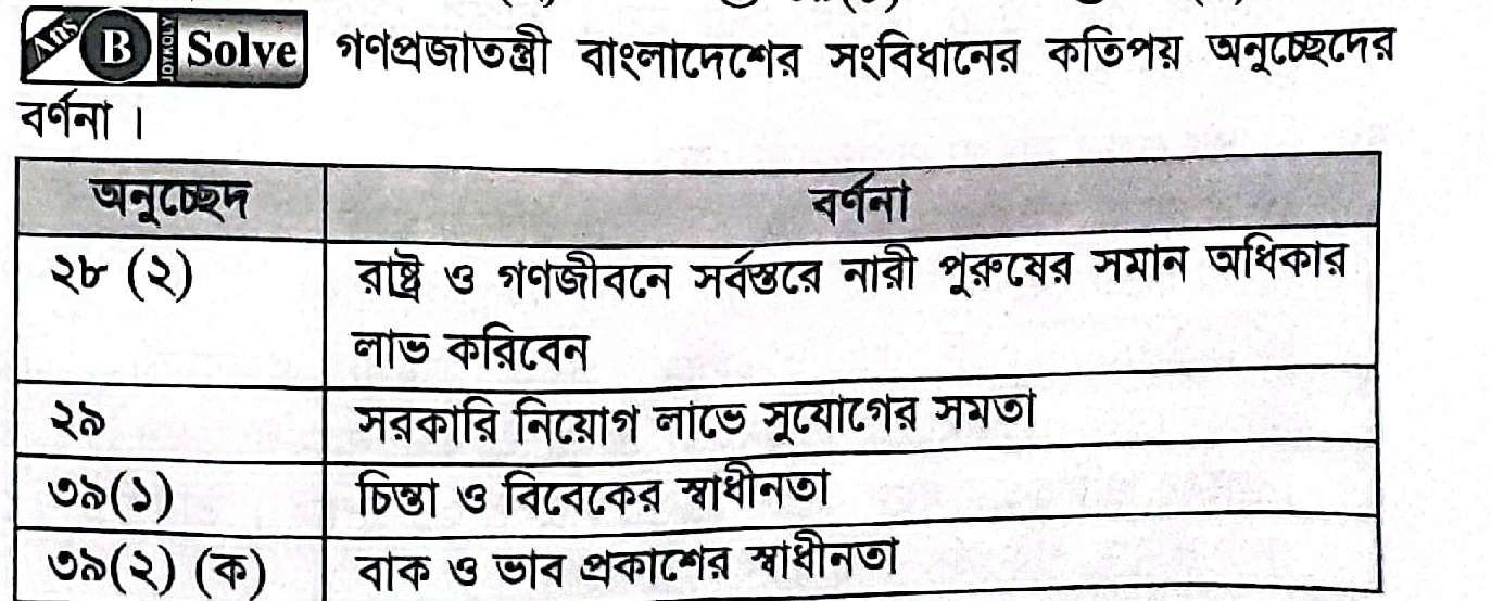 সর্বস্তরে নারীপুরুষের সমান অধিকার নিশ্চিত করার কথা বাংলাদেশের সংবিধানের কোন অনুচ্ছেদে বলা হয়েছে?