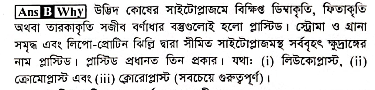 Correct Answer is: ক্লোরোপ্লাস্ট