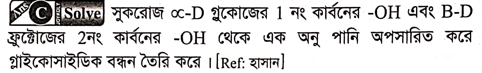 সুক্রোজ ɑ-D গ্লুকোজ এবং β-D ফ্রুকটোজের কত নম্বর কার্বিনের মাঝে গ্লাইকোসাইডিক বন্ধন সৃষ্টি হয়?