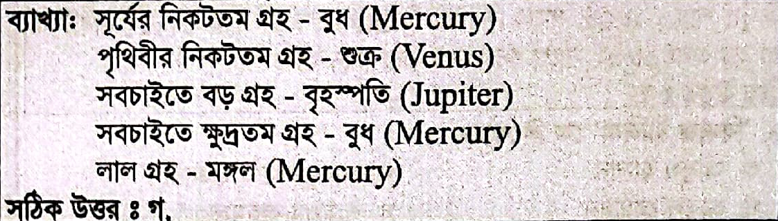 Correct Answer is: বুধ