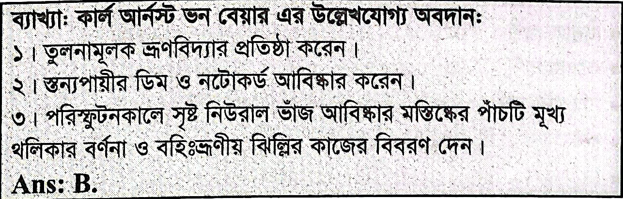 Correct Answer is: কার্ল আর্নস্ট বেয়ার
