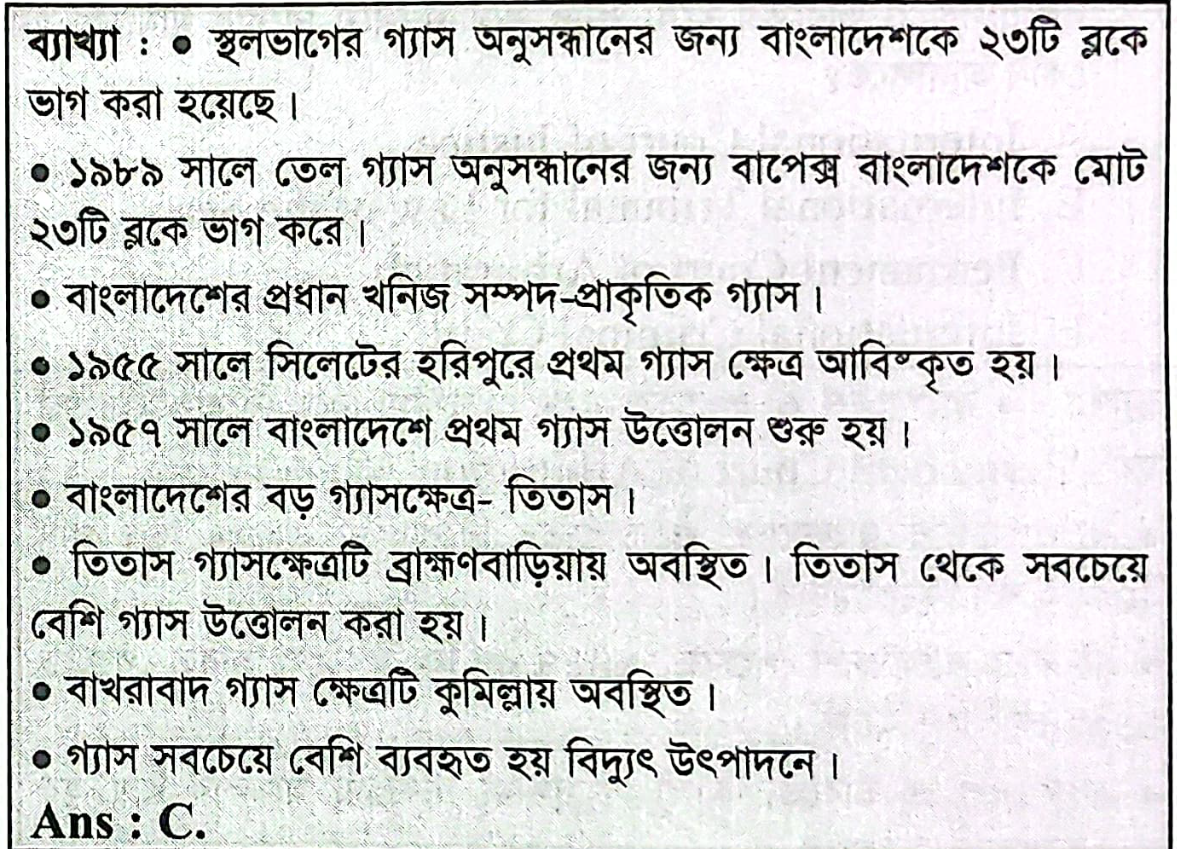 স্থলভাবে গ্যাস অনুসন্ধানের জন্য বাংলাদেশকে কয়টি ব্লকে ভাগ করা হয়েছে?