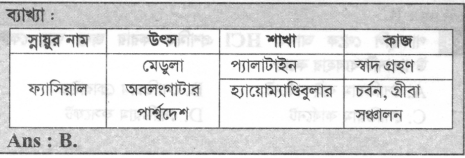 স্বাদ গ্ৰহণে কাজ করে কোন স্নায়ু ?