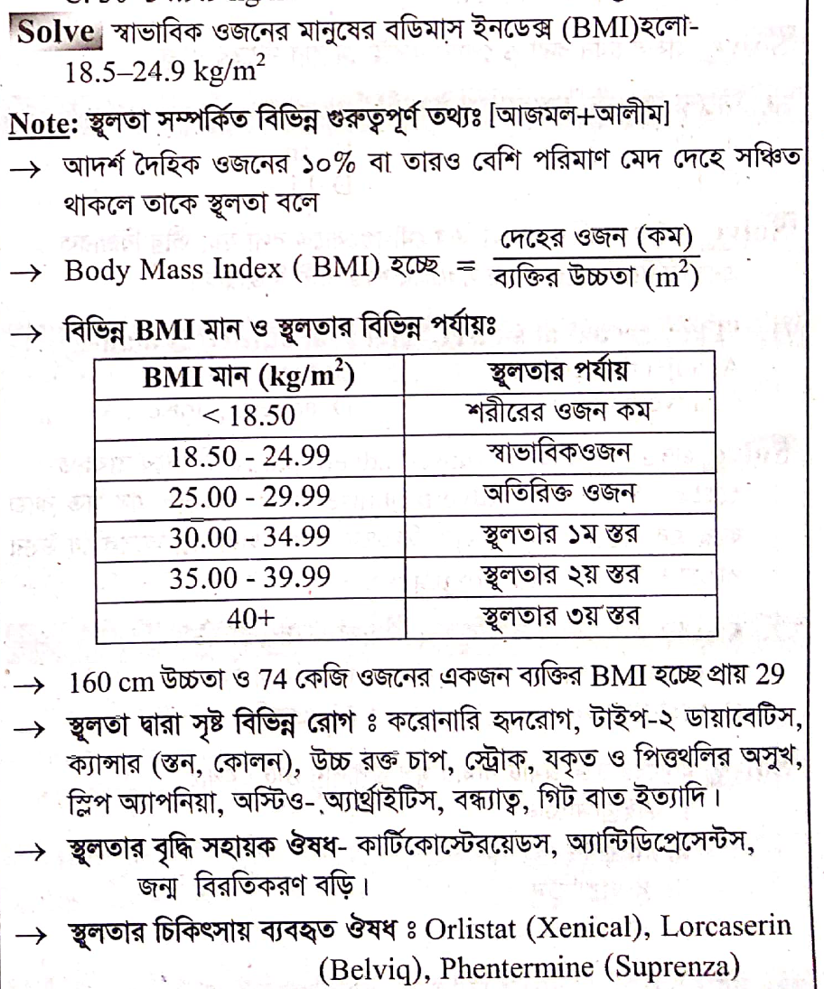স্বাভাবিক ওজনের মানুষের বডি মাস ইনডেক্স(BMI) কত?