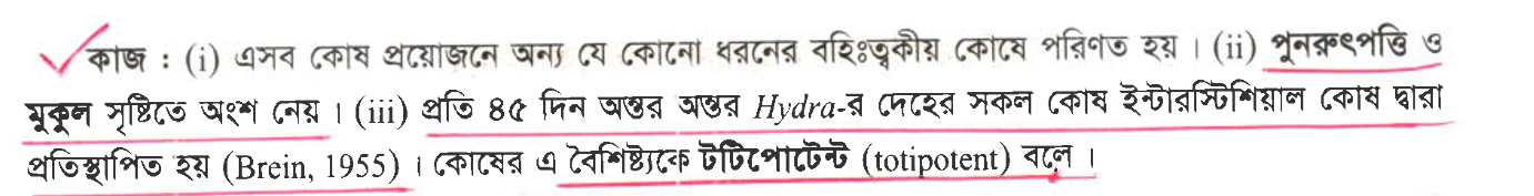 ((হাইড্রা)বোর্ড ক)প্রশ্ন-১কোন কোষের কারণে Hydra কে অমর প্রাণী বলা হয়?