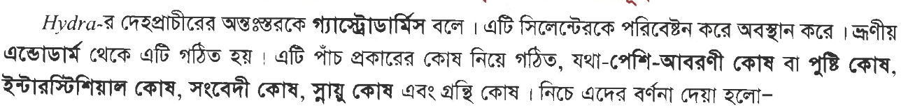 ((হাইড্রা)বোর্ড ক)প্রশ্ন-১০কোনটি হাইড্রার গ্যাস্ট্রোডার্মিসে থাকে না?