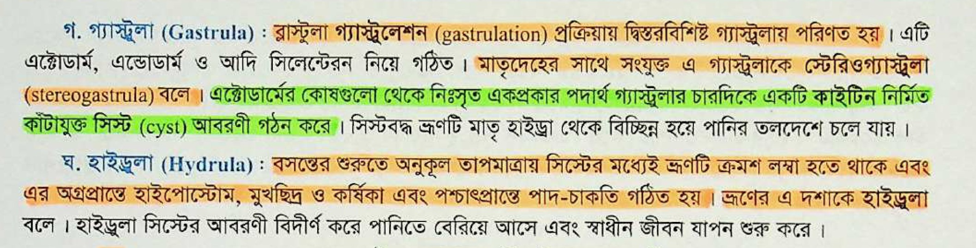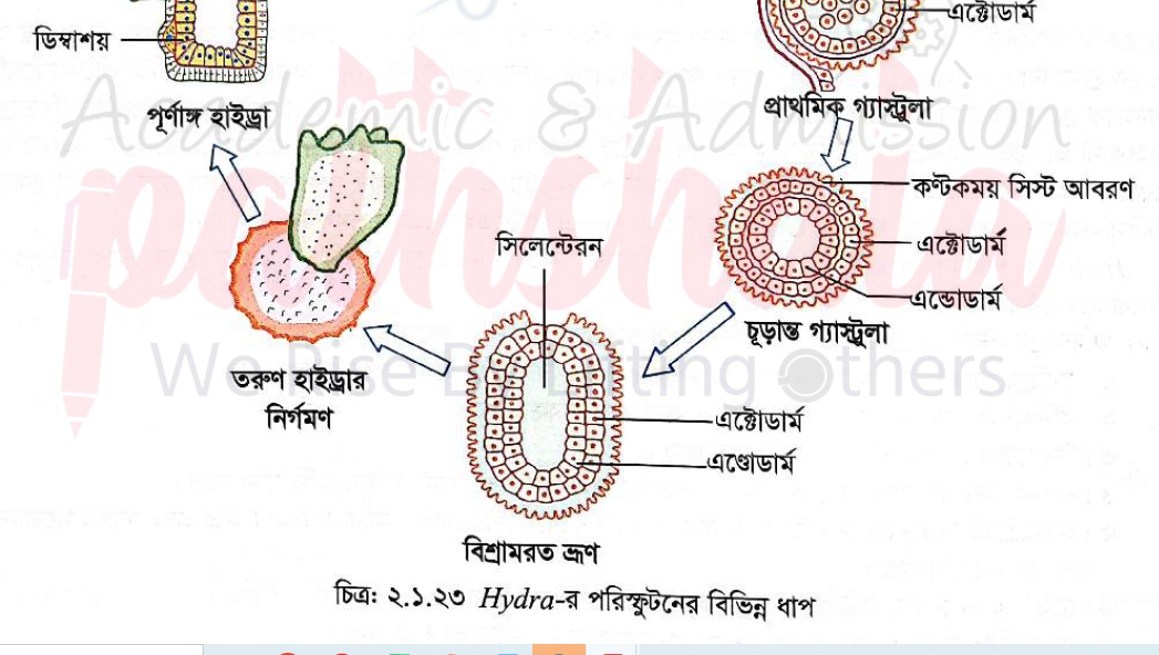 ((হাইড্রা)বোর্ড ক)প্রশ্ন-১৩হাইড্রার পরিস্ফুটনের সঠিক ধাপ কোনটি?