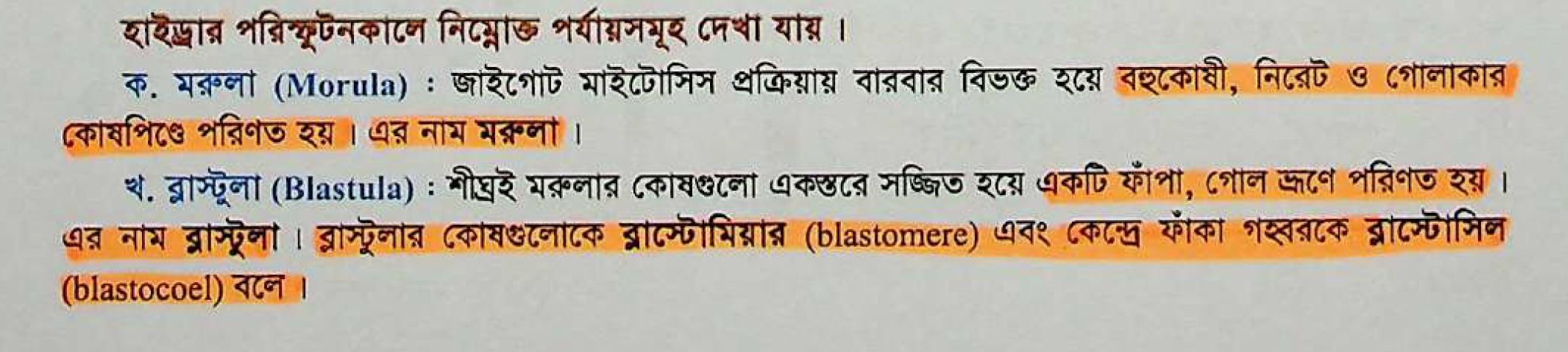 জাইগোট গ্যাস্ট্রুলা মরুলা হাইড্রুলা ব্লাস্টুলা পূর্ণাঙ্গ