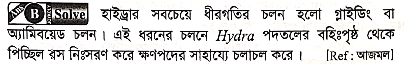 ((হাইড্রা)বোর্ড ক)প্রশ্ন-২০হাইড্রার ধীর গতির চলন কোনটি?