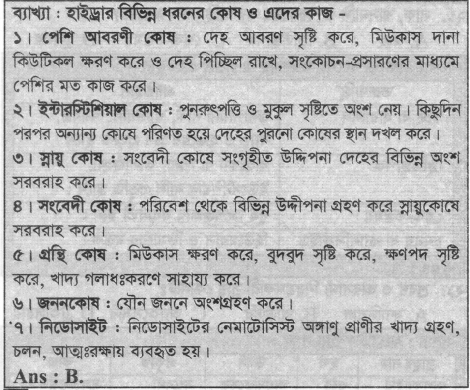 হাইড্রার খাদ্য গ্রহণ, চলন, আত্নরক্ষার কোন কোষ ব্যবহৃত হয় ?