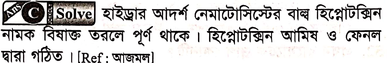 হাইড্রার নেমাটোসিস্টের বাল্ব কী দিয়ে পুর্ণ থাকে?