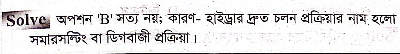 হাইড্রার বেলায় কোনটি সত্য নয়?
