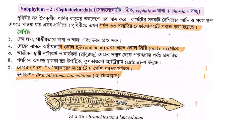 Branchiostoma lanceolactum কে হুইল অঙ্গবাহী প্রাণী বলা হয়।