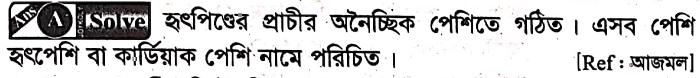 হৃদপিন্ড প্রাচীর কী ধরনের পেশি দিয়ে গঠিত ?