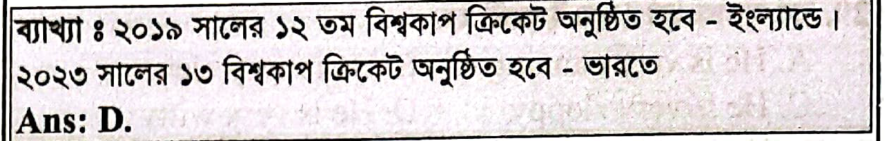 ২০১৯ সালের বিশ্বকাপ ক্রিকেট অনুষ্ঠিত হবে ?