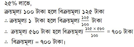 ৫৬০ টাকার একটি চেয়ার কিনে কত টাকায় বিক্রয় করলে ২৫% লাভ হবে?