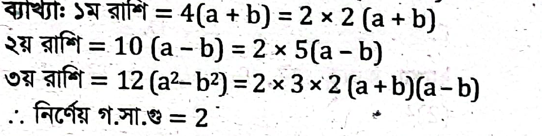 4(a + b), 10(a – b) এবং 12 (a2 – b2) এর গ.সা.গু. কত?