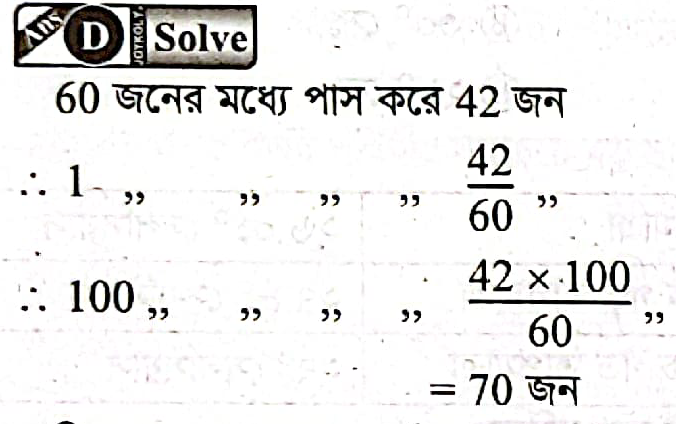 60 জন ছাত্রের মধ্যে 42 জন ছাত্র পাশ করলে পাসের হার কত?
