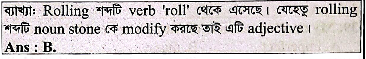 A rolling Stone gathers no moss. here `rolling` is used as a/an: