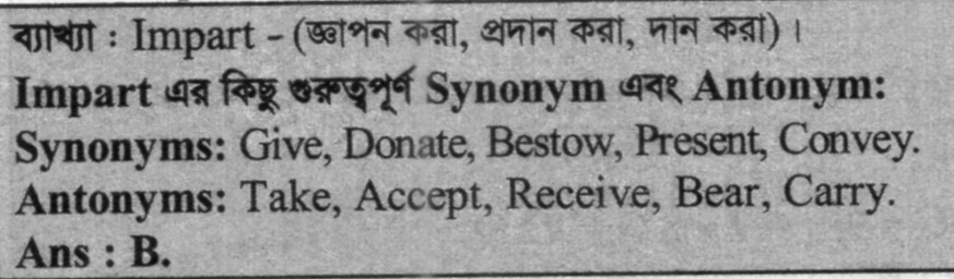 Antonym of the word `Impart` is: