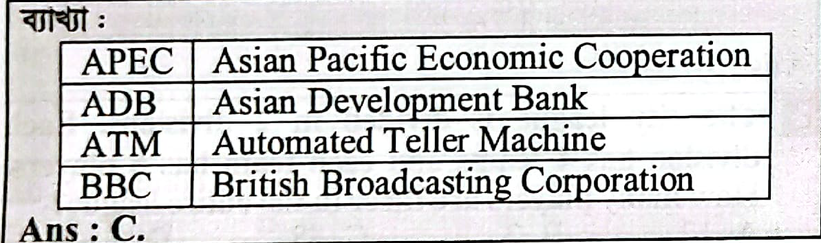Correct Answer is: Automated Teller Machine