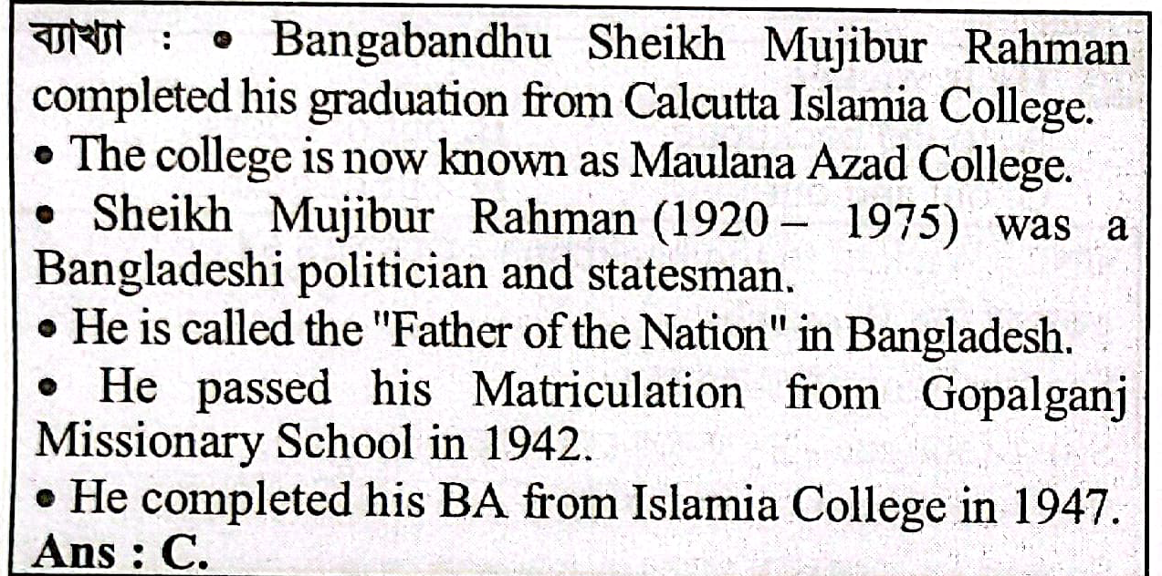 Bangabandhu Sheikh Mujibur Rahman completed his graduation from the-