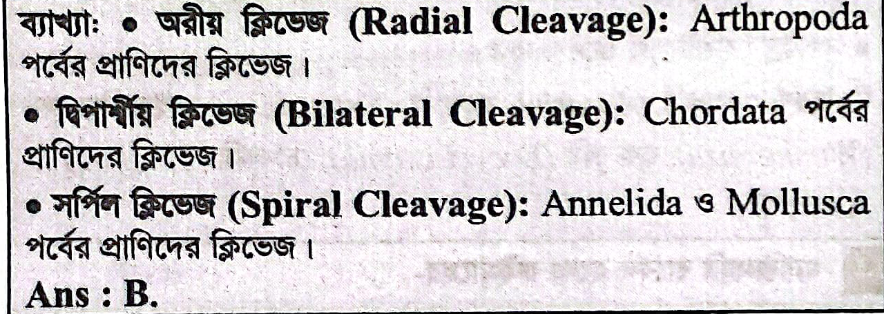 Bilateral cleavage ঘটে কোন পর্বের প্রাণীতে?