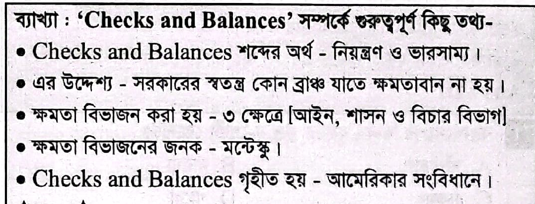 Correct Answer is: নিয়ন্ত্রণ ও ভারসাম্য
