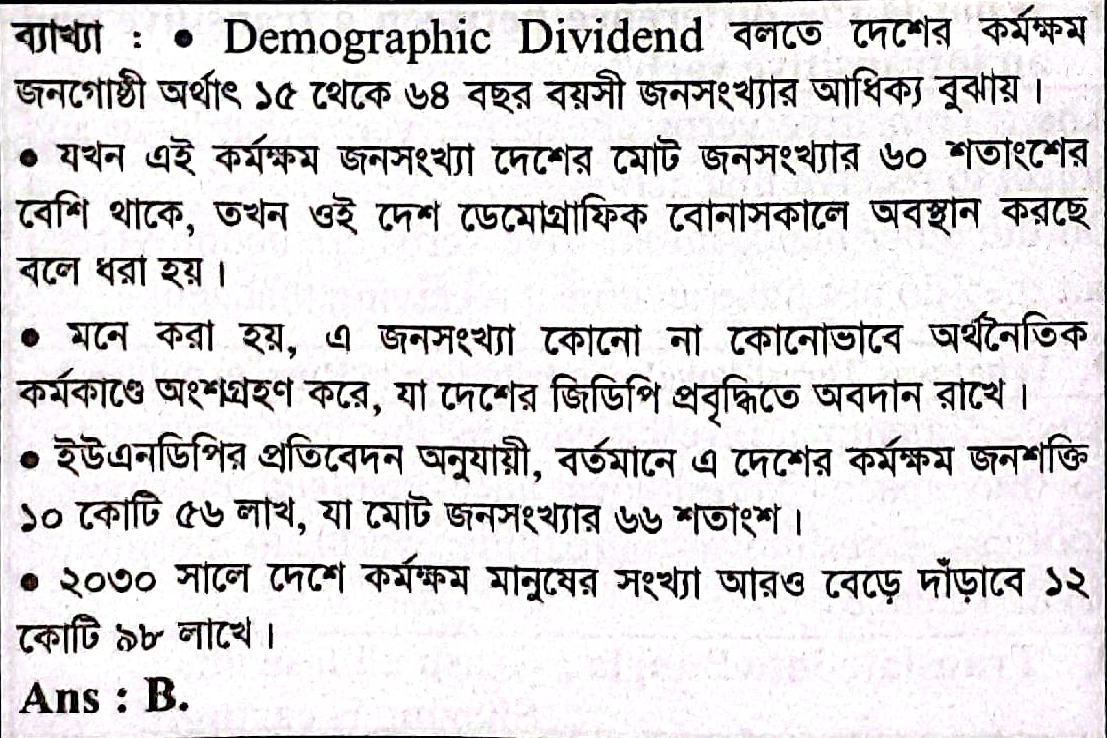 Demographic Dividend বলতে কী বুঝায়?