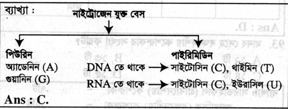 DNA ও RNA এর পার্থক্যকারী নাইট্রোজেন বেস কোনটি?