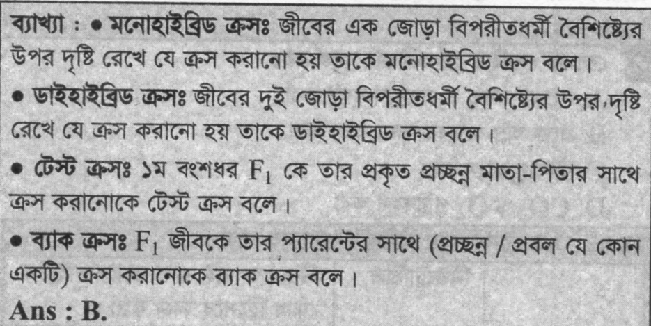 Correct Answer is: টেস্ট ক্রস