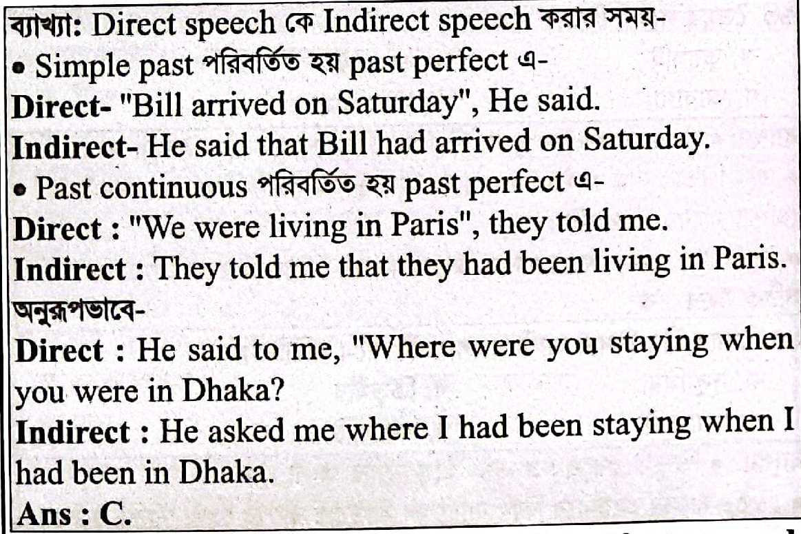 He said to me, `Where were you staying when you were in Dhaka?` The correct indirect speech is: