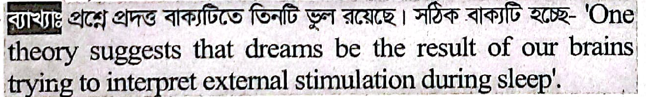 How many errors are there in the sentence—- “One theory suggests that dreams are the result of our brains trying to interpret externally stimulate during sleep.”?